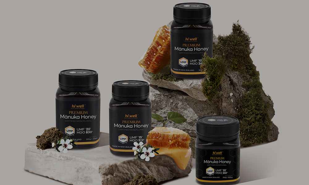 Hi Well Manuka Honey is packed in the Plateau Volcanic Highlands, in the Whanganui region of central New Zealand’s North Island. Produced by the best combination of high altitude, optimal weather, and volcanic soil, it is rich in “Leptosperum Scoparium” and has no other source of honey that can contaminate or dilute manuka honey, allowing absolutely pure manuka honey to be harvested, and Hi Well honey beekeepers call it a true honey masterpiece.